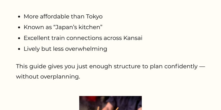 Plan Osaka, food, and easy day trips with confidence